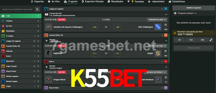 A aposta K55Bet oferece aos jogadores a experiência mais conveniente de apostas em eSports!